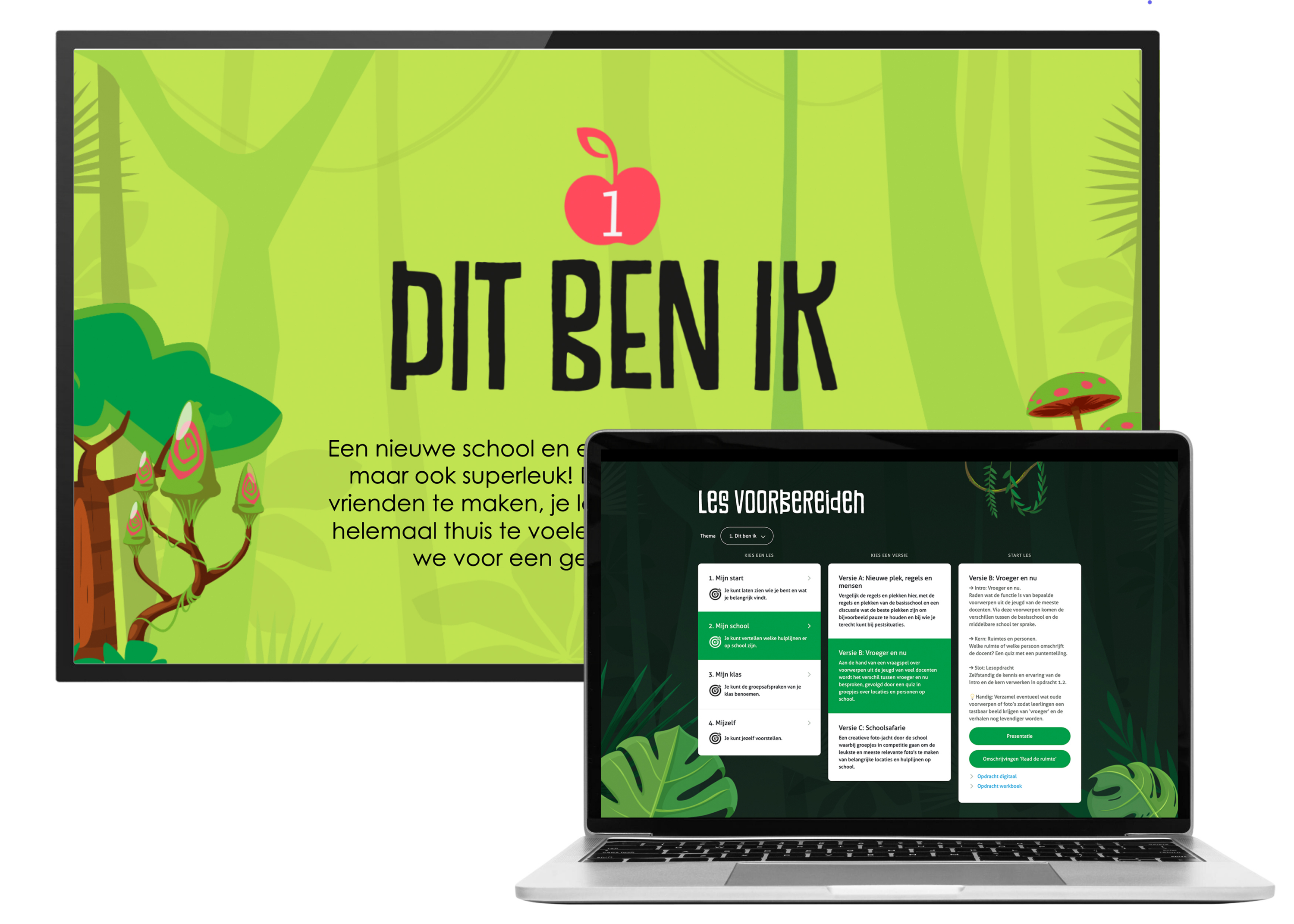 Benieuwd of onze lesmethode bij jou past? Vraag je gratis toegangscode aan en krijg toegang tot de volledige Docententool. In het dashboard heb je direct toegang tot de lesvoorbereiding met tal van actieve presentaties, de themakaart met opdrachten voor je leerlingen, de toolbox en de voortgang van je leerlingen.